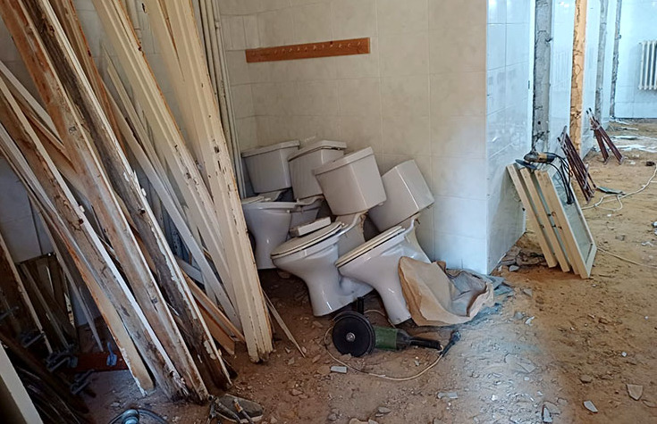 In der Schule St. Vinzenz der Schwestern von Besançon in Baskinta im Libanongebirge werden dzt. die im Libanon noch länger andauernden Sommerferien genützt, um die völlig desolaten Sanitärräume auf beiden Etagen des Internatstraktes von Grund auf zu sanieren und zu modernisieren.